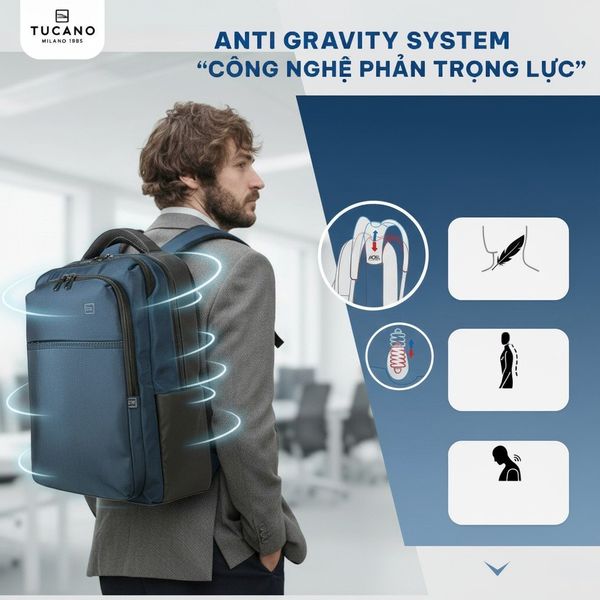 Trong nhịp sống hiện đại, laptop đã trở thành người bạn đồng hành không thể thiếu. Thế nhưng, việc di chuyển hằng ngày với khối lượng hành lý nặng nề đôi khi để lại cảm giác mỏi vai, đau lưng và ảnh hưởng trực tiếp đến sức khỏe. Với khát vọng mang đến sự thoải mái tối đa cho người dùng, Tucano – thương hiệu balo danh tiếng đến từ Milan – đã tiên phong nghiên cứu và ứng dụng công nghệ AGS (Anti Gravity System), một giải pháp đột phá giúp hành trình mỗi ngày trở nên nhẹ nhàng và thanh thoát hơn.