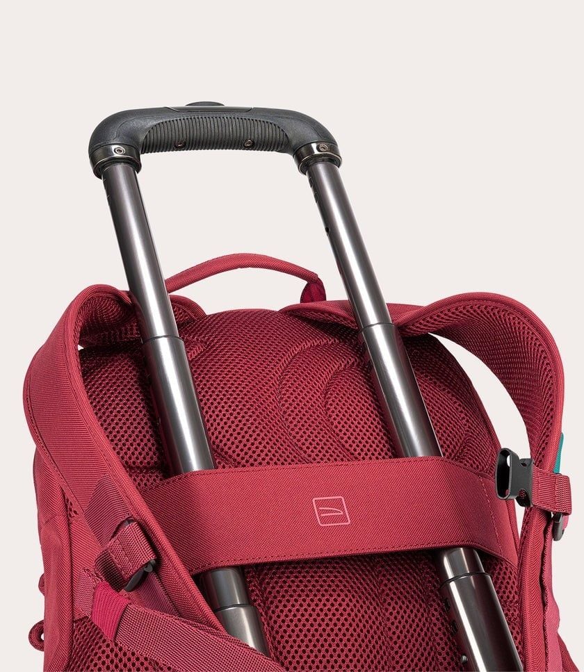 Bên trong balo được phân chia thành các ngăn riêng biệt, có ngăn thiết kế đặc biệt cho cả laptop và máy tính bảng. Mặt trước balo có túi để đựng các phụ kiện khác, dây đeo vai ở mặt sau có thể điều chỉnh độ dài và tích hợp thêm dây đeo xe đẩy tiện lợi. Hai bên balo có thêm hai túi rộng rãi để bạn có thể đem thêm một chai nước và một cây dù.